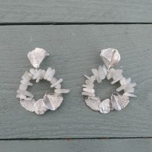 Curved and textured petals of silver, clustered into statement circles with beautiful vintage moonstones.