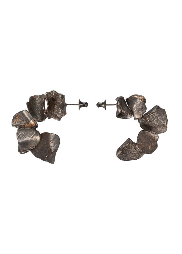 Curved and textured petals of silver or bronze, clustered into beautiful sculptural hoops.