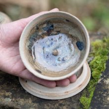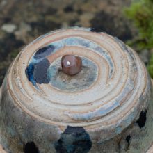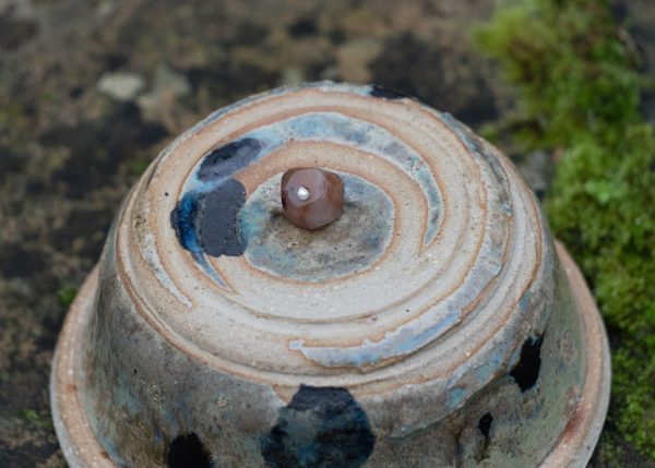 A collaboration with the wonderful Norfolk potter Cree and Clay. These one-of-a-kind lidded trinket dishes will keep your jewellery safe and free of dust while being a beautiful jewelled object in their own right. Keep next to your bed or your mirror, or wherever you put on or off your jewellery! Each one has a unique tactile shape and coloured glaze complemented by a Scottish agate or baroque pearl and sterling silver handle. All stones, pearls and metals are reclaimed vintage and recycled.
